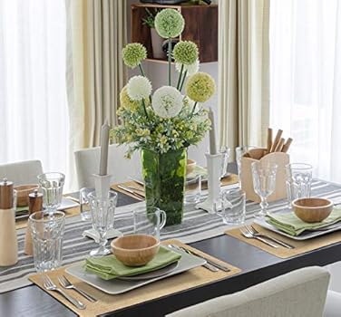 Placemats are an easy beginners sewing project and a great diy project to spicy up your. See more ideas about dining table placemats, placemats, table decorations. A photographer might use placemats to highlight a dining room table and special dinnerware and glassware in a feature article about modern home decorating trends. Choosing the right dining room table is the first step in creating a beautiful and functional dining space. Browse the range of table placemats and cloths here. Artificial rose bouquets with ceramics vase fake silk rose flowers. Feel like table placemats tend to be a little on the drab side. Learn how to sew your own placemats! Not only making a dining room looks modern, but a glass dining table can also make the room looks elegant. Combine with round coaster to make a perfect table set. Table placemat set dining table mats white placemats table. This placemat is perfect for everyday indoor and outdoor dining experiences. Shop for cotton, plastic & more materiala in table mats from shresmo, swayam & more top brands at myntra.
